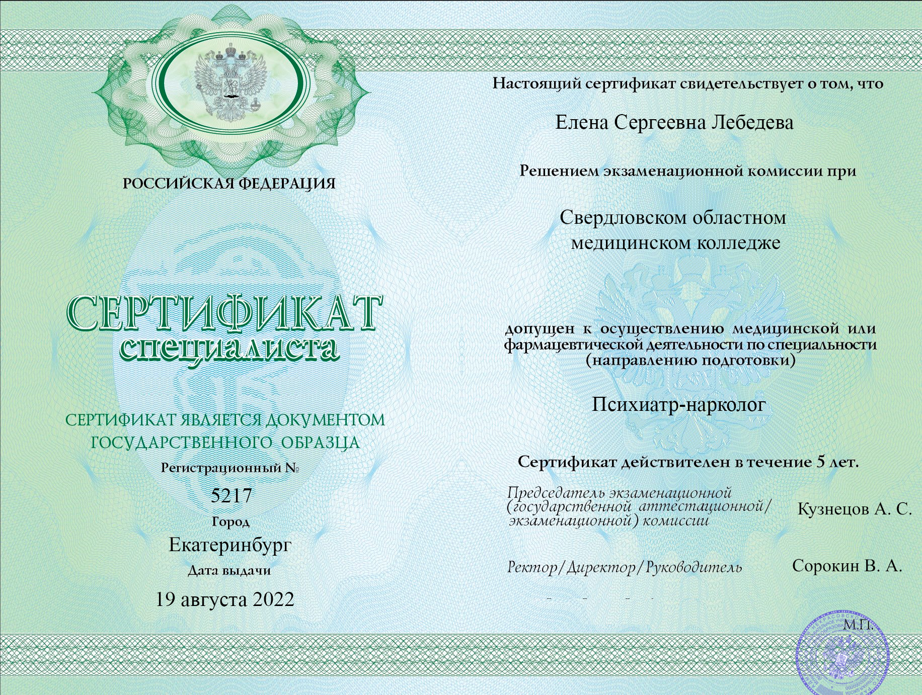 Елена Сергеевна Лебедева врач нарколог клиники доктора Стукаловой в Мичуринске